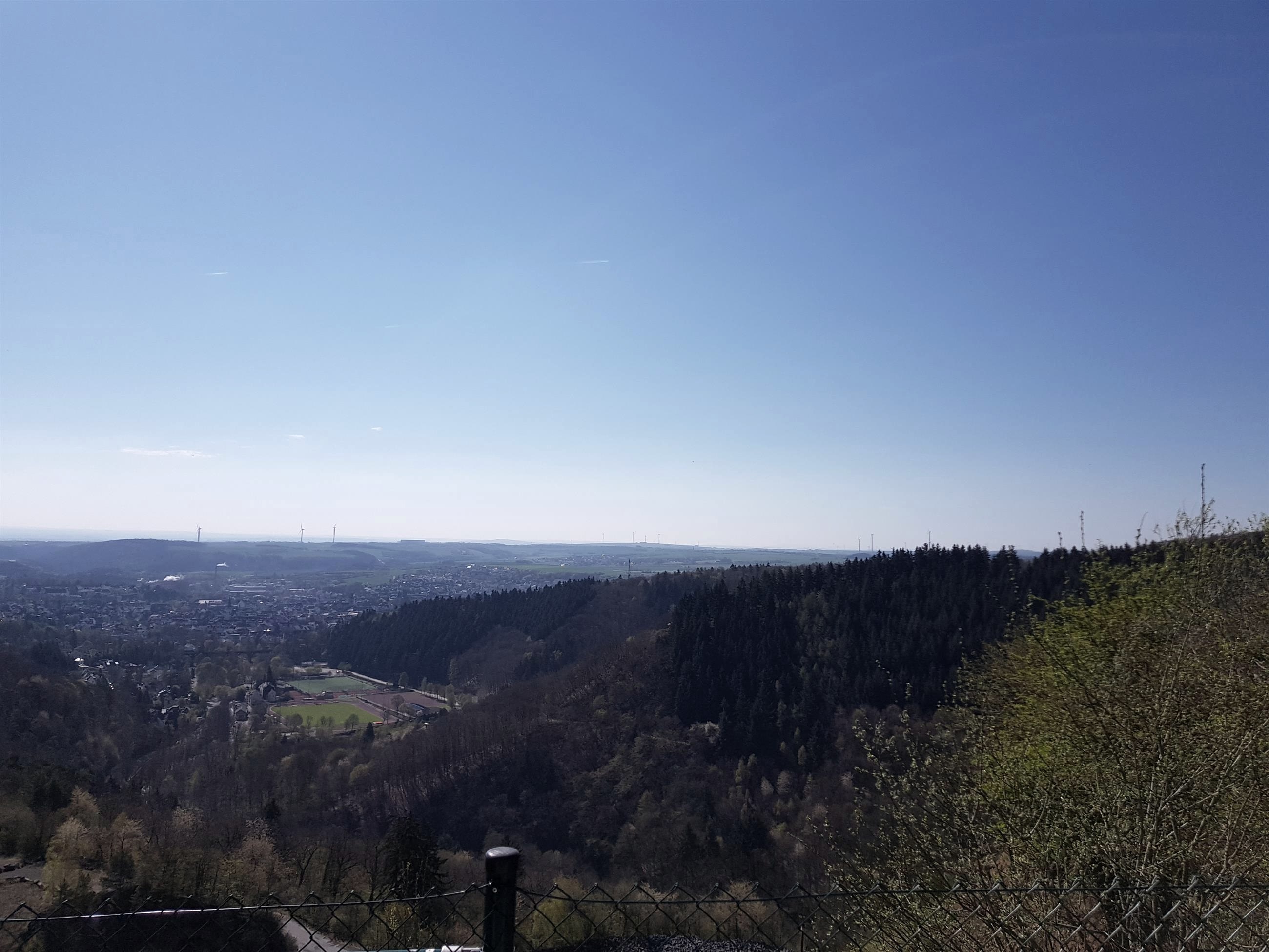Die Aussichtsplattform "Am Johannesknecht" an der Kreisstraße 21 kurz vor dem Ortseingang zu St. Johann bietet einen fantastischen Weitblick über das Nettetal und Mayen bis hin zum Maifeld.