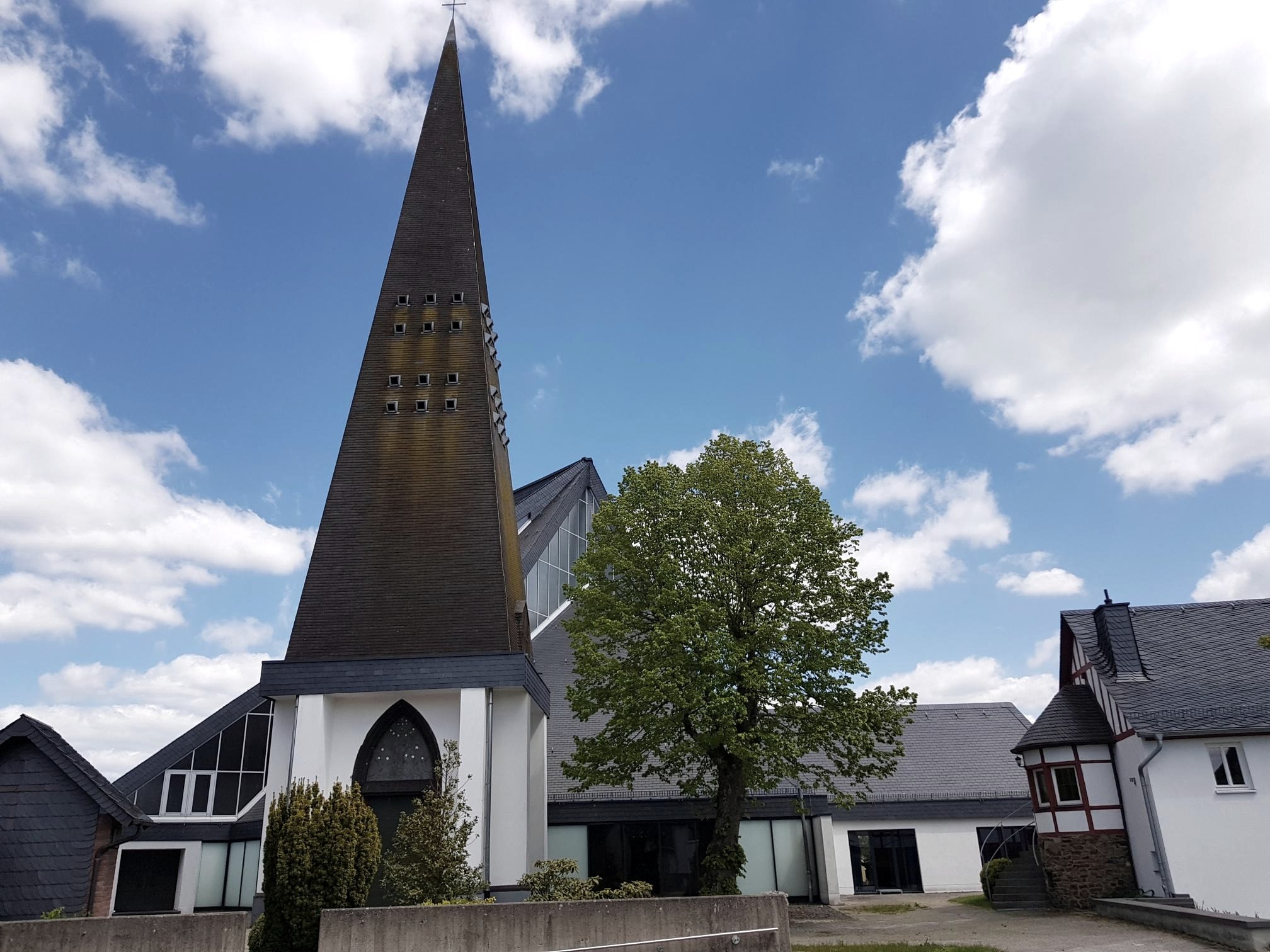 Beim Blick auf Nachtsheim fällt dem Betrachter sofort die 1971 fertiggestellte moderne St.-Stephanus-Kirche mit ihrer ungewöhnlichen Dachkonstruktion ins Auge.