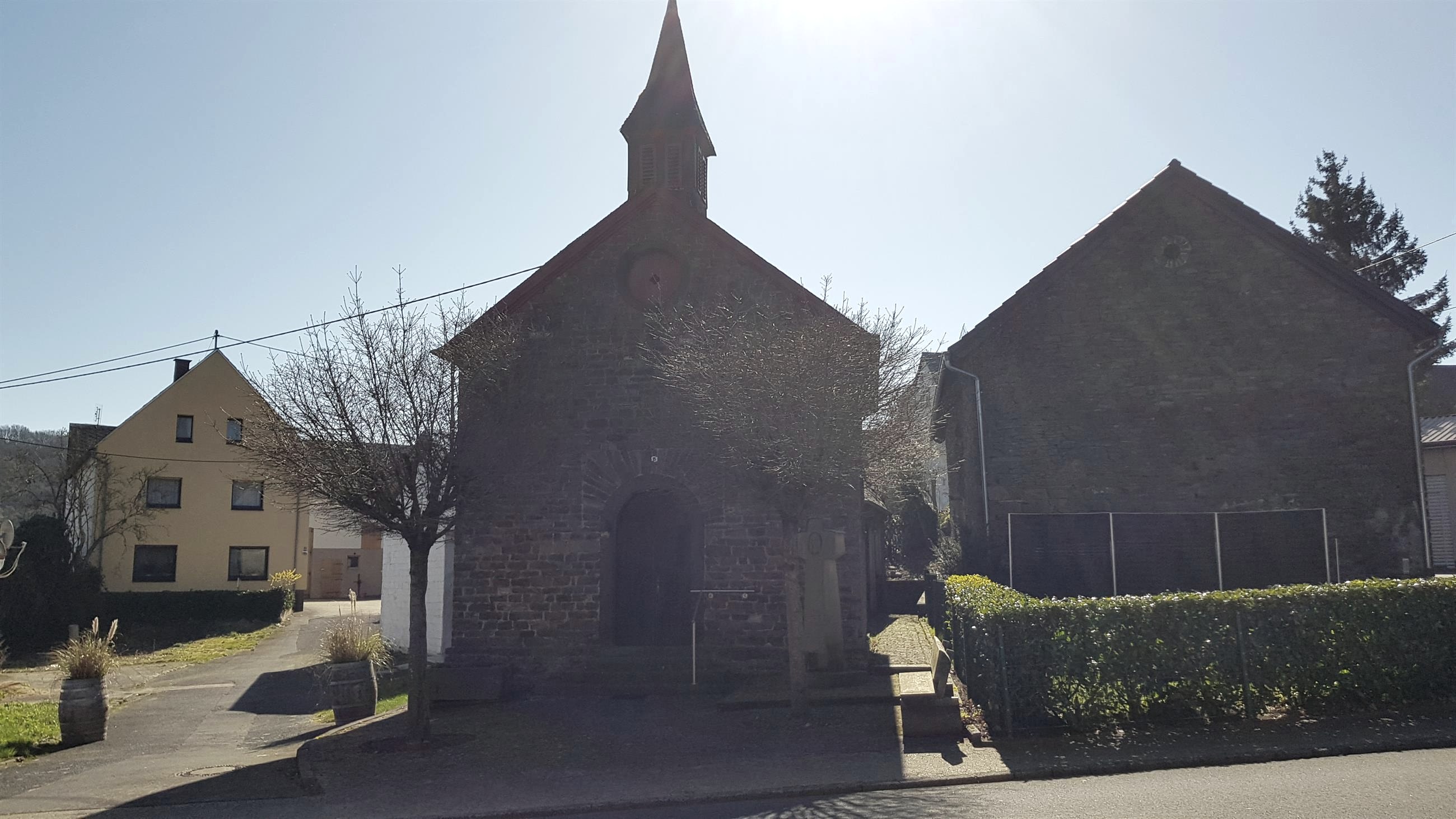 The verifiable building history of the parish church in Wanderath begins in the 13th century. The original church is Romanesque, around 1500 the late Gothic nave, today's aisle, was built with the help of the Counts of Virneburg, who were the patrons of the church. When the church was enlarged by a south and north aisle around 1530, the side walls of the old church were broken through. In 1655 Wanderath becomes an independent parish. These include the places Engeln, Büchel, Freilingen, Nitz, Ober- Mittel- and Niederbaar, Herresbach, Eschbach, Döttingen, Siebenbach and Drees. Virneburg was added at the beginning of the 19th century. For this, Drees is assigned to Welcherath. In 1896/1897 the current, neo-Gothic main nave was built. The two Gothic aisles are being demolished. In 1921/1922 the church was expanded again. The then octagonal sacristy was torn down and the current one built. The main nave was lengthened by 10 m and the gallery was built. The tower was raised by 6 meters. In addition, the church received a continuous roof area. Since then, the outward view has not changed. Since Wanderath only consisted of a church, a rectory, a school and a residential building until the middle of the 19th century, there are many legends and myths surrounding the question of why a church was built in the poor Wanderath at all.