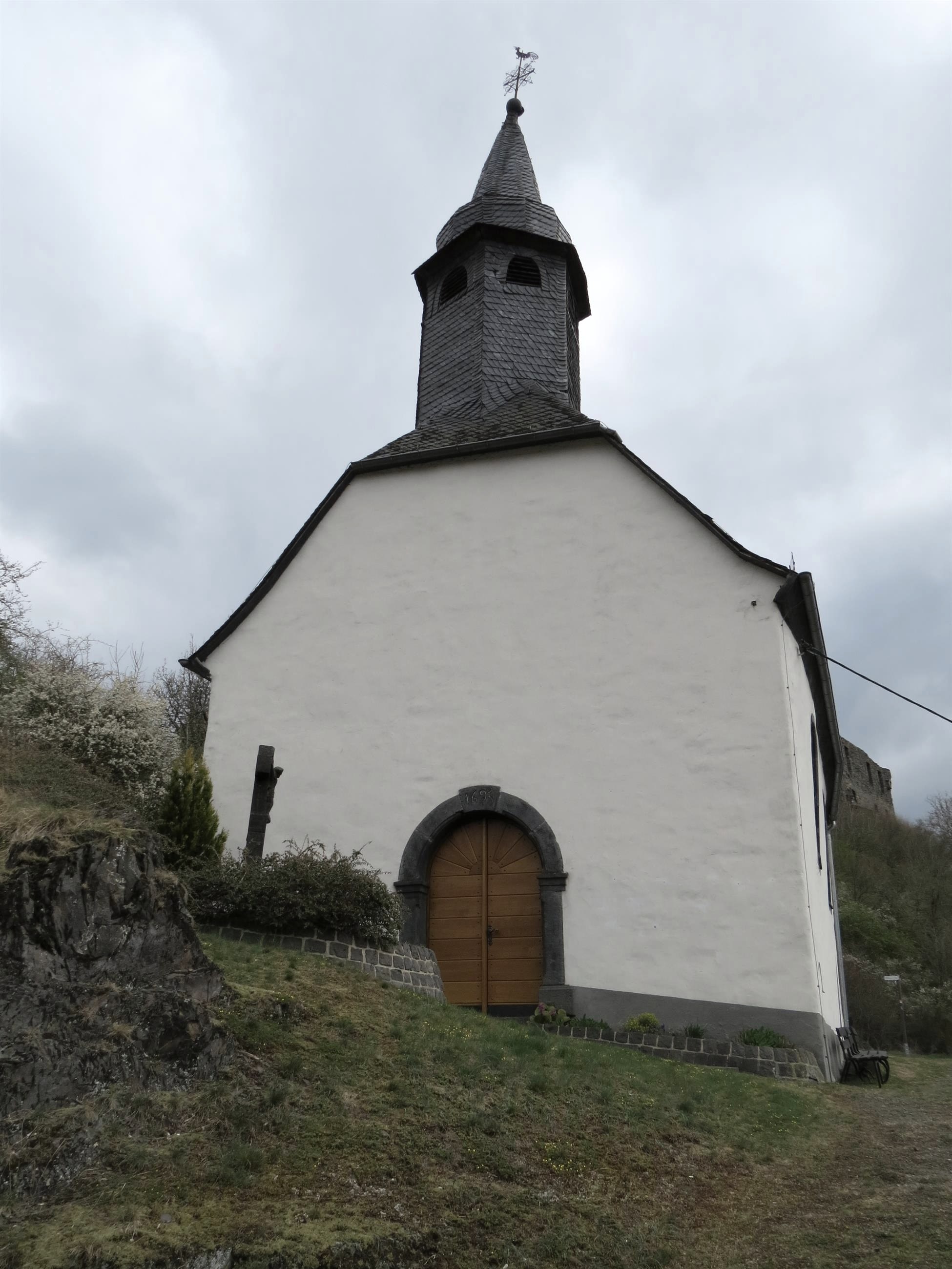 The chapel of St. Trinitatis in Virneburg is idyllically located below the ruins of Virneburg Castle.