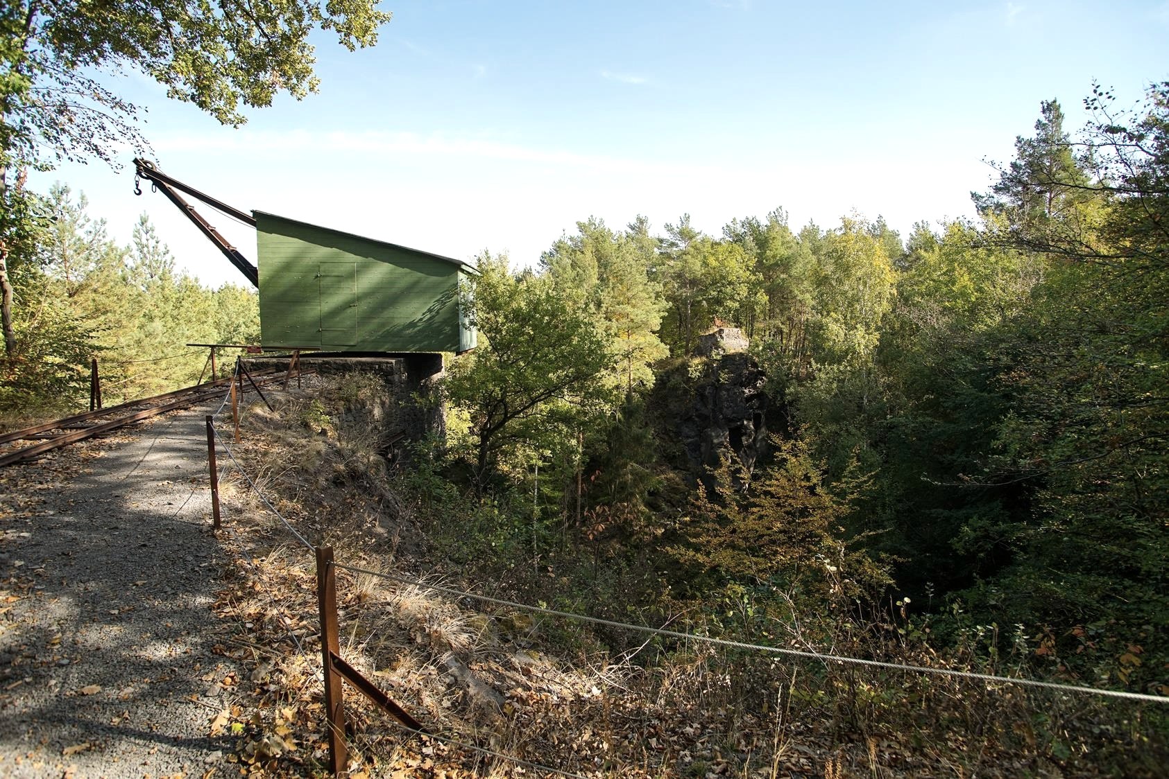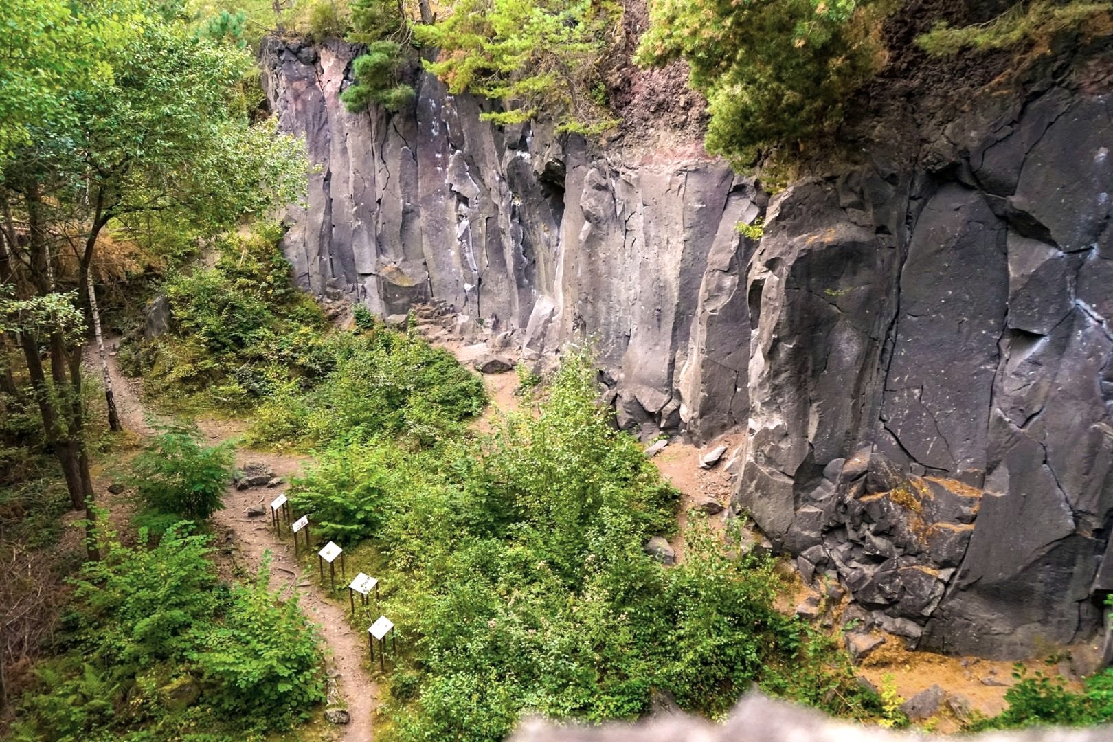 Today, the idyllic pit landscape with its bizarre rock formations and relics from bygone times, such as crane bases and pit cranes, is part of the volcano park as a landscape monument.