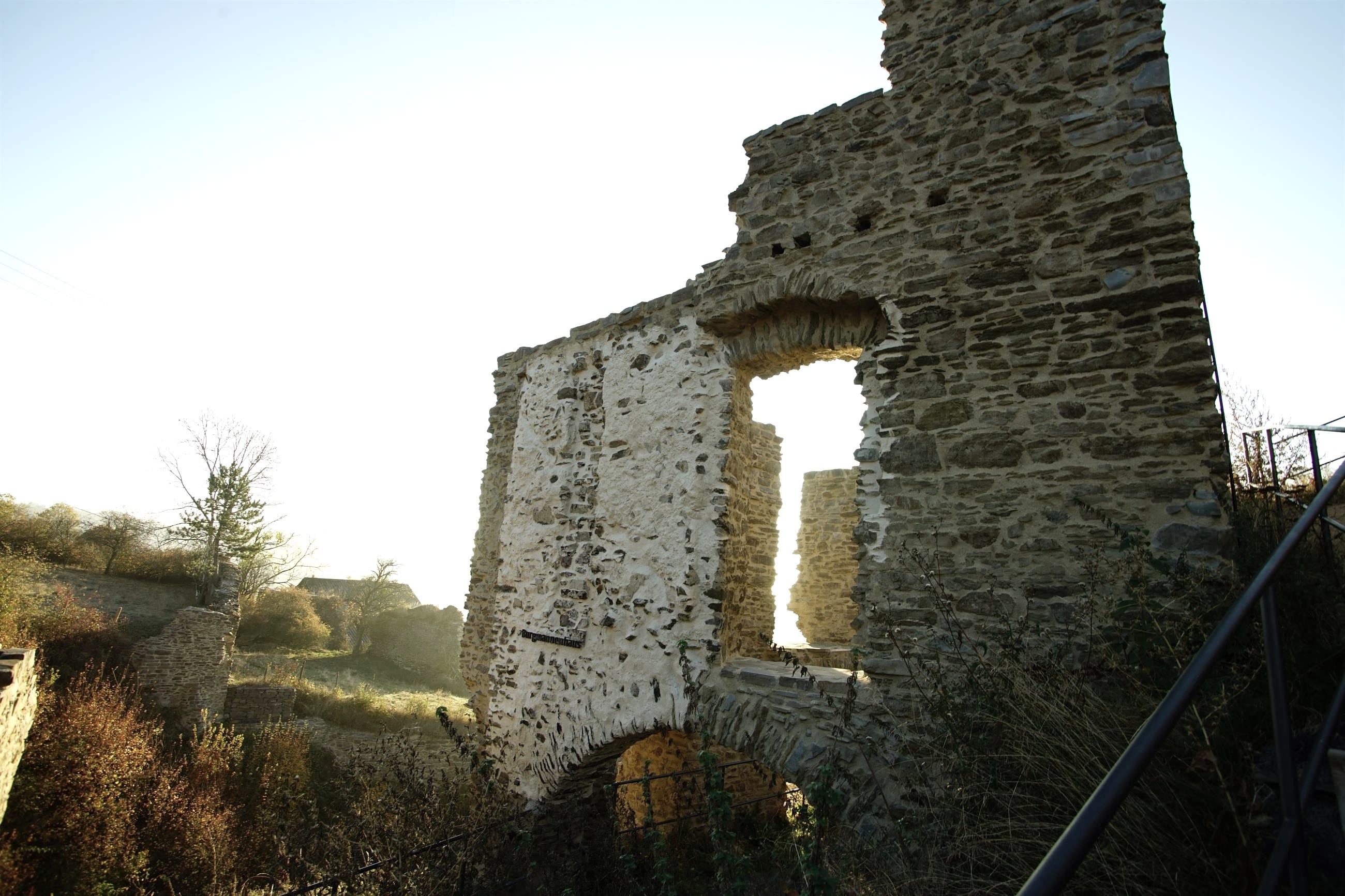 Today, large parts of the Löwenburg still remain, giving a good impression of how imposing the castle's former appearance must have been. First and foremost, the remains of the 25 metre high keep with its three metre thick walls can be seen from afar. The high entrance to the imposing keep faces the valley and is therefore strategically located on the side facing away from the enemy. Unfortunately, the castle tower is currently closed and not accessible.
