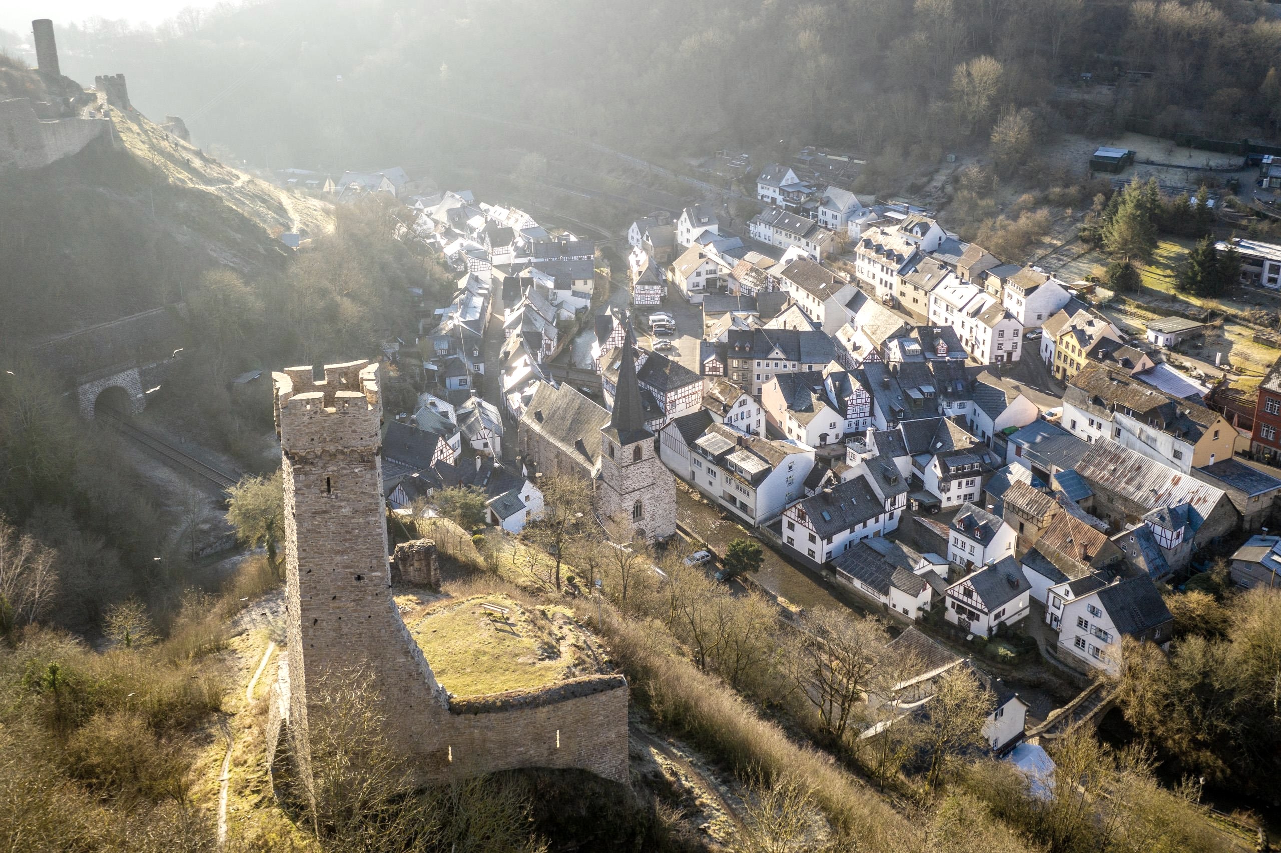 The Löwenburg above the half-timbered village of Monreal is a so-called spur castle and was first mentioned in a document in 1229.