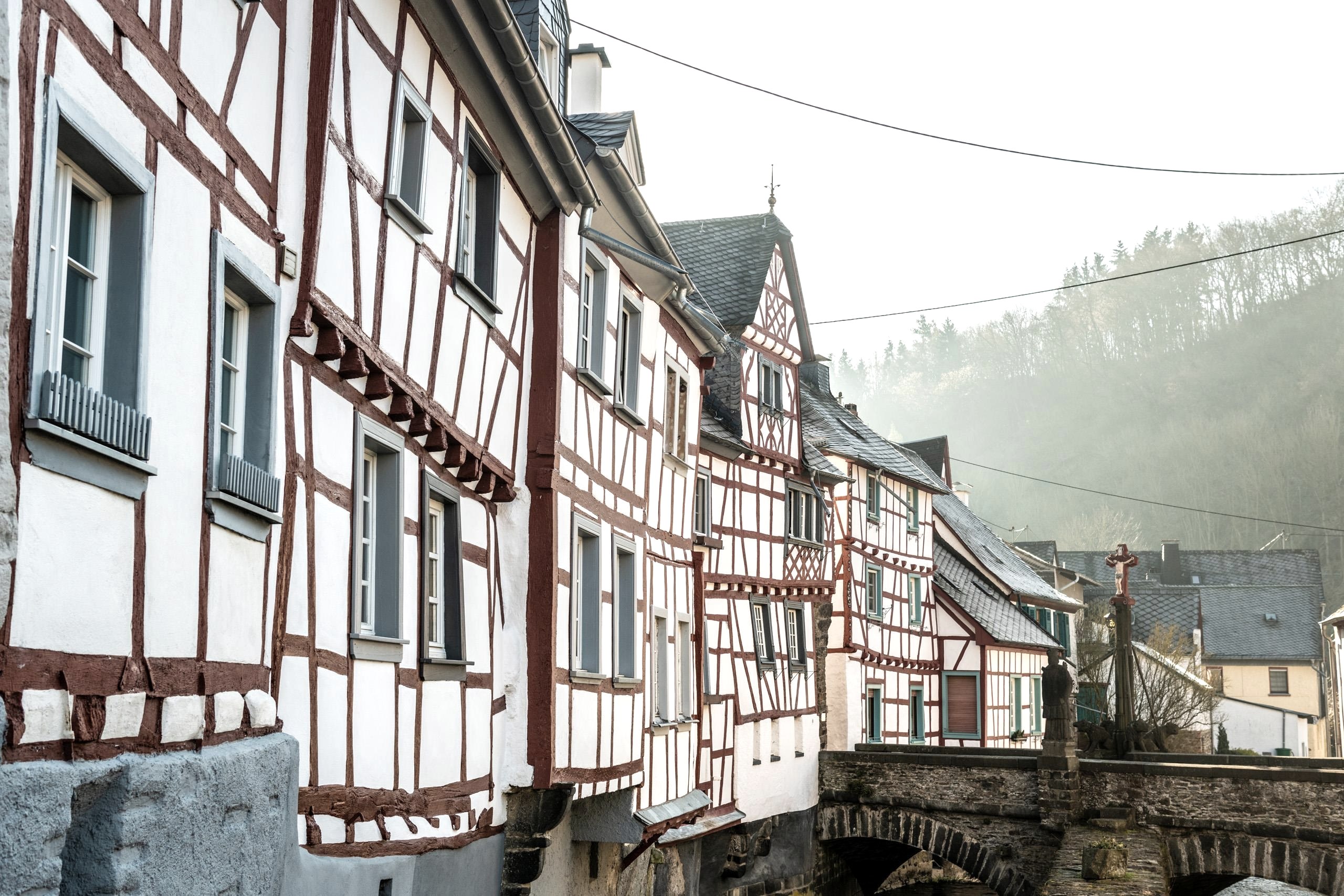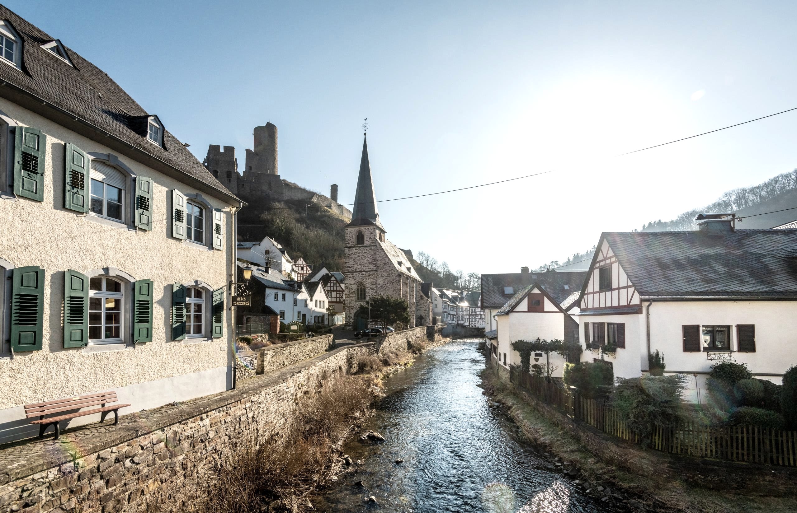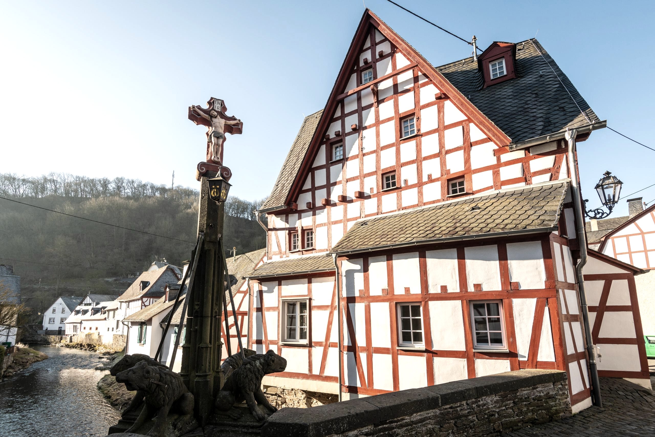 The narrow streets of Monreal, its quaint Holy Trinity Church, the massive Nepomuk Bridge over the clear flowing Elzbach and the ruins of Löwenburg and Philippsburg castles high above the village are a beautiful destination in the eastern Eifel.