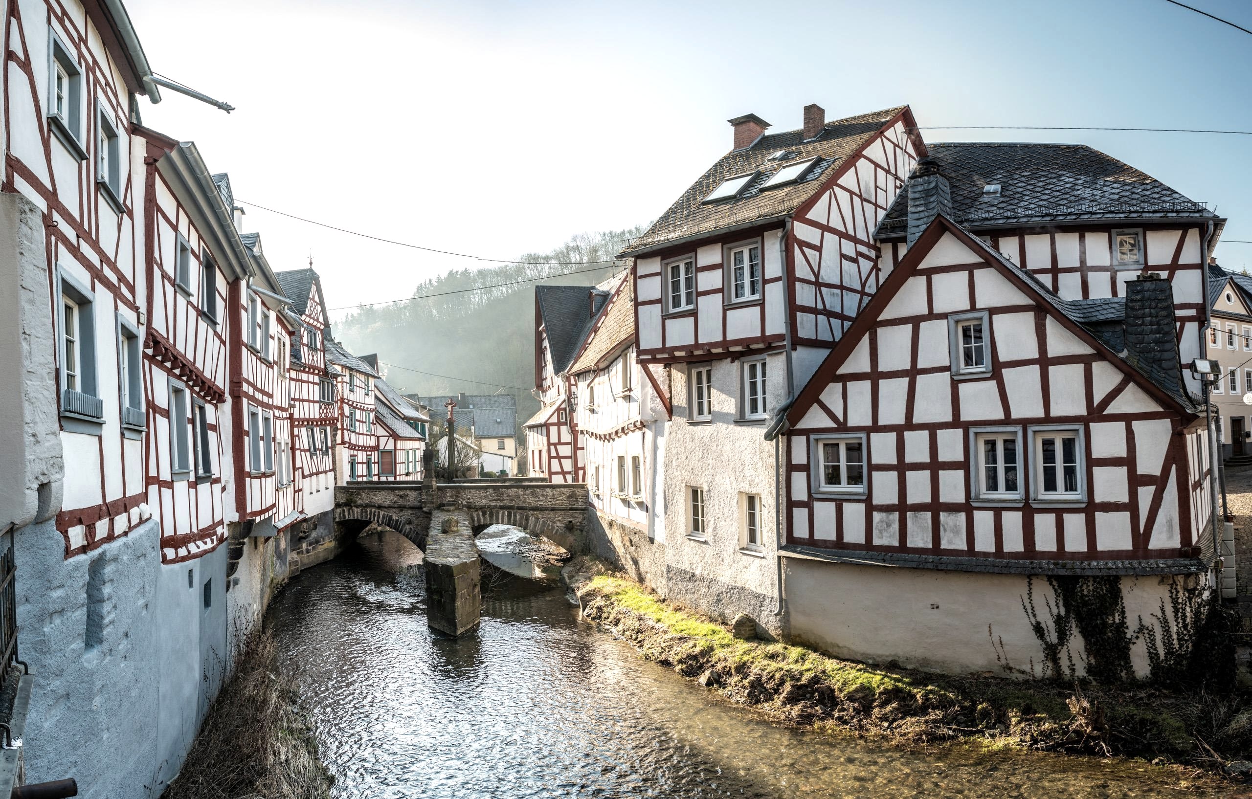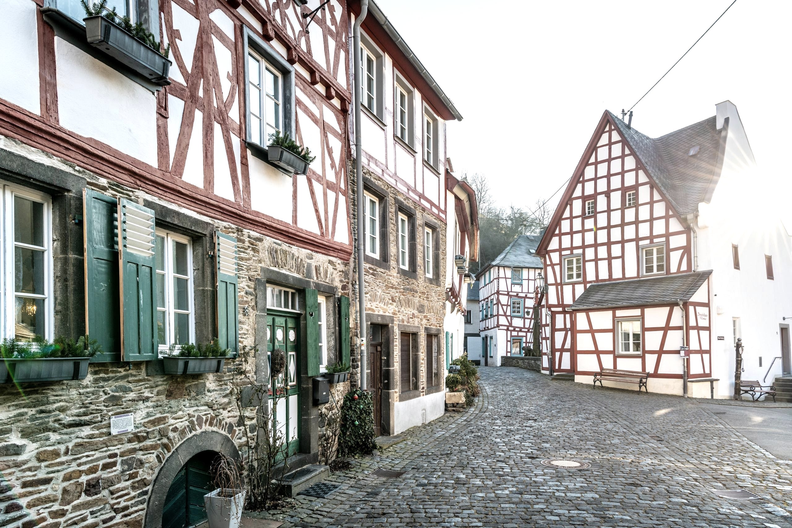 The red and white half-timbered houses nestle closely together, especially the four-gabled house from the 15th century transports walkers into a fairytale past. The still beautifully preserved half-timbered houses bear witness to the prosperity that Monreal achieved through the processing of sheep's wool and the manufacture of cloth from the 17th century onwards. In the second half of the 19th century, handicraft was no longer competitive with international, industrialised rivals, and the population became impoverished. A fate that Monreal shares with the equally picturesque Monschau. Not only visually is Monreal a destination that relaxes the soul. Café Plüsch with its cosy interior, the Old Rectory with its cottage garden and sunny terrace on the banks of the stream or the former signal box at the gates of the town are perfect addresses for foodies. The originally furnished restaurant on the former railway line is connected to the medieval town centre via a promenade along the Elzbach. The highlight for lovers of handicrafts is the pottery in the old school with its colourful ceramics, also displayed in a terraced garden.