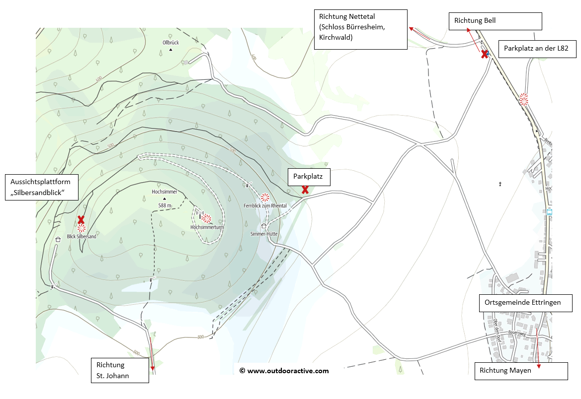 La chaire a une superficie de 25 mètres carrés et se compose uniquement de bois de mélèze local. La construction a pris 100 heures. Pour les randonneurs qui se promènent dans la forêt, respirent l'air frais qui sent le bois et la mousse, une visite du bâtiment est forcément un "must": De là, vous avez une vue magnifique sur les hauteurs de l'Eifel avec les jolies villes ou sur la Nettetal jusqu'au célèbre Nürburg. Et puis quelque chose de très spécial. La vue de témoins proches du passé local non loin de là. Vers l'ancienne mine «Silbersand». C'était l'un des gisements de minerai les plus importants de l'Eifel. Halden et Pingen témoignent encore du dynamisme de l'industrie minière. Probablement déjà connus des Romains, des minerais de plomb, de cuivre et de fer y ont été exploités de manière vérifiable entre 1401 et 1677. En 1846, les opérations sur «sable argenté» reprennent afin d'utiliser spécifiquement les dépotoirs avec leurs riches réserves d'aphalérite. En raison de l'épuisement du minerai, la mine a été abandonnée en 1914. Entre 1957 et 1959, le Louisenstollen a été de nouveau ouvert pour examiner à nouveau les minerais. Cela a conduit à l'enlèvement supplémentaire des matériaux de décharge vers une usine de traitement.