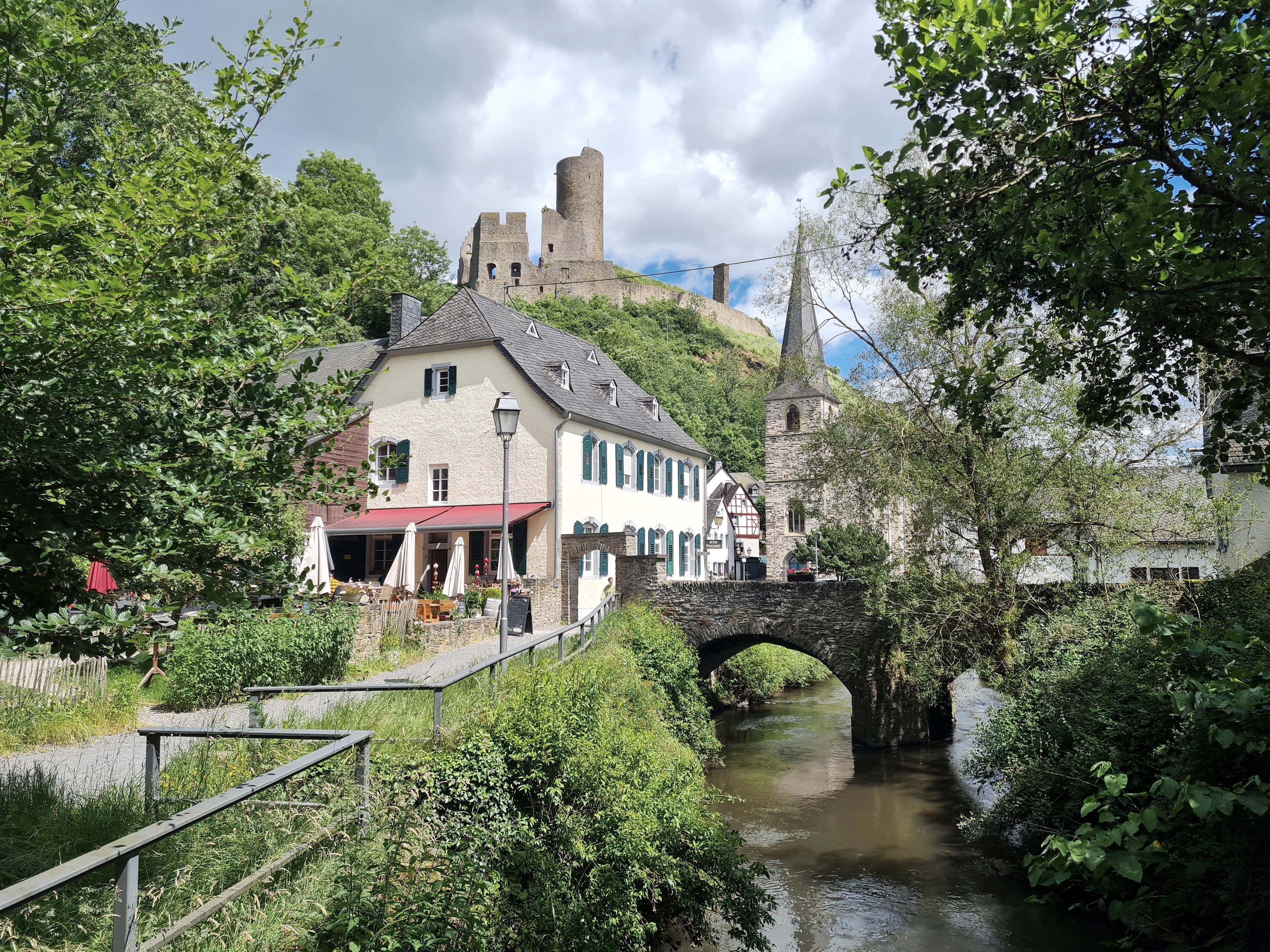 Le café Altes Pfarrhaus Monreal est une étape appréciée aussi bien par les habitants que par les touristes dans le cadre d'une randonnée sur le sentier de rêve «Monrealer Ritterschlag», du circuit de Vordereifl «Karbachtalweg», du chemin de Saint-Jacques de Compostelle ou de l'Eifelcamino, d'un tour à vélo sur la «Elztal-Radweg» ainsi que sur la «Eifel-Schiefer-Radweg».