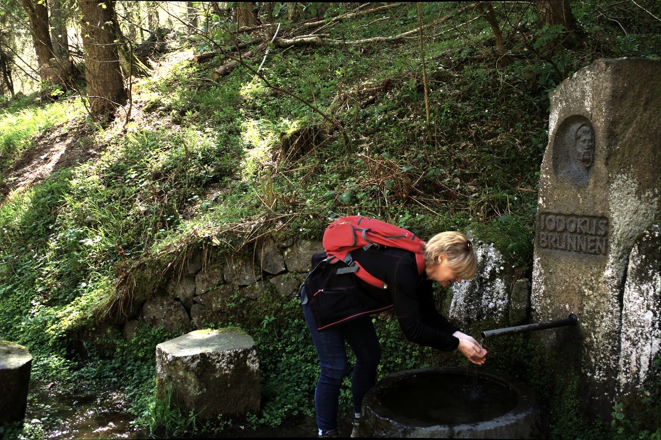 Une autre étape est la fontaine de Jodokus, avec sa délicieuse eau potable, avant d'atteindre finalement l'ermitage de St. Jost. Une visite de cette chapelle de pèlerinage de style gothique tardif datant du 15e siècle est un véritable must. L'autel baroque du 17e siècle est frappant et particulièrement caractéristique.