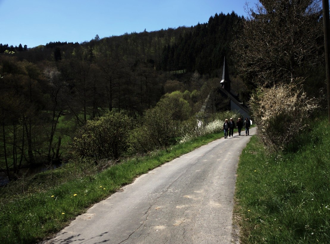 Le sentier de Jodokus continue à travers la vallée de la Nitz jusqu'à la colonne de Jodokus, puis passe par les villages de Welschenbach, Niederwelschenbach et Acht (où il vaut la peine de visiter la chapelle Hubertus restaurée) et revient à Langenfeld par la forêt.