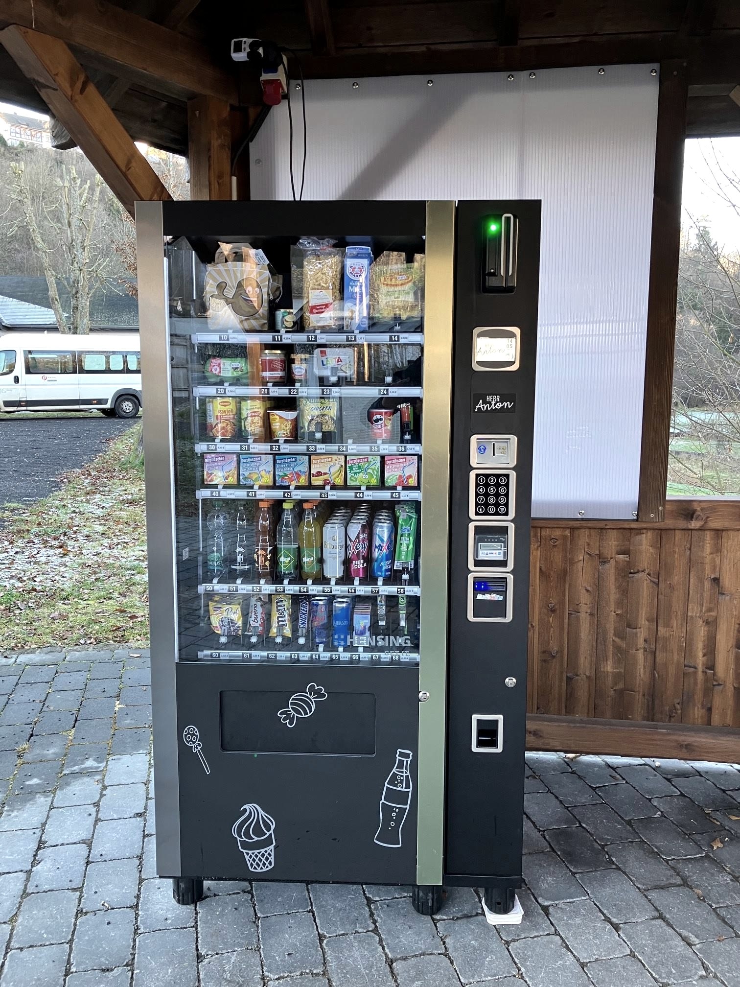 Le distributeur "Herr Anton" propose une grande variété de snacks et de boissons, mais aussi des produits régionaux, comme par exemple des pommes de terre, des œufs ou des pâtes.