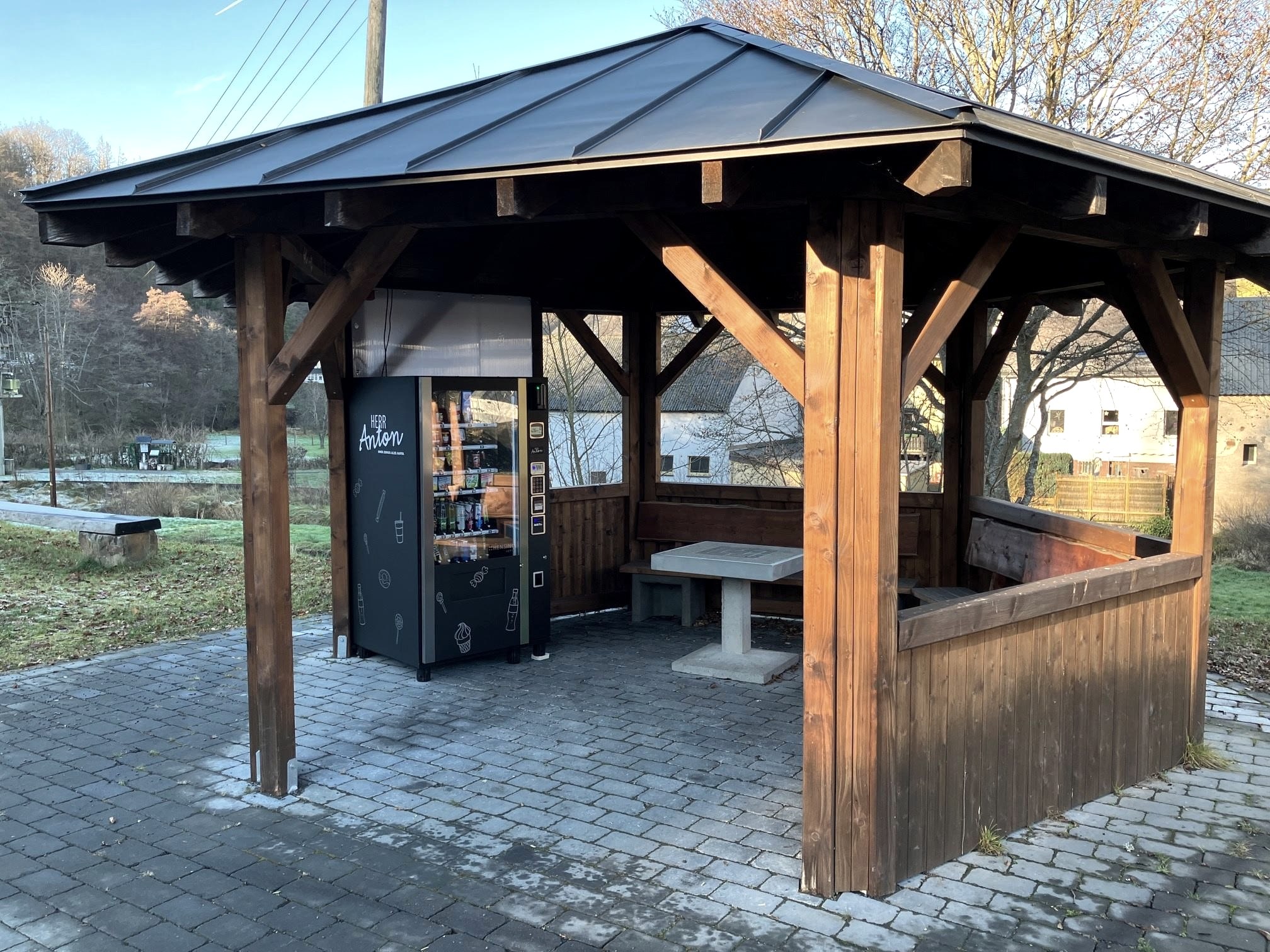 Versorgungsautomat in der Hütte auf dem Gemeindeplatz an der Gemeindehalle.