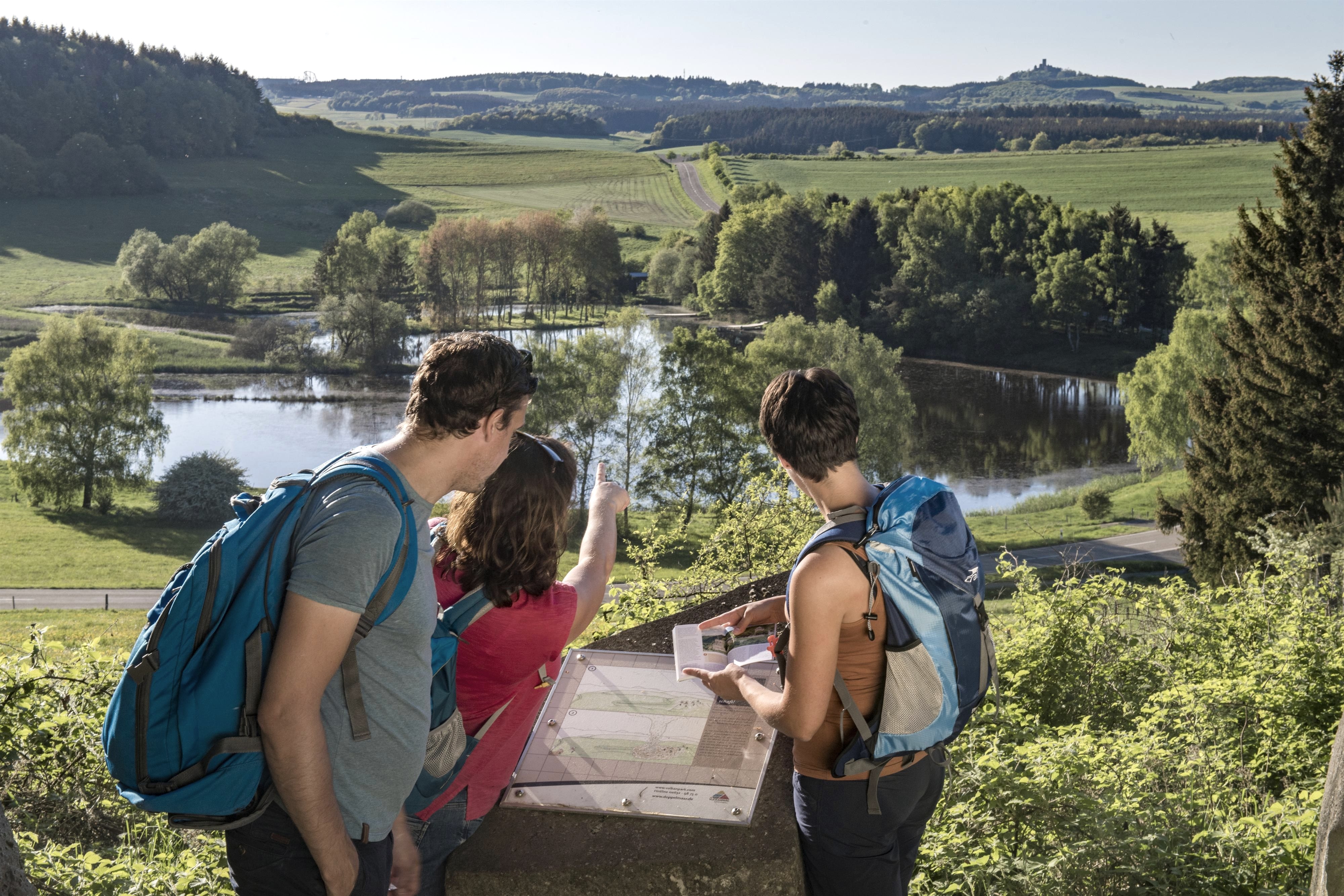 Das Traumpfädchen „Eifelturmpfad Boos“ bietet Blicke auf ein Doppelmaar und Vulkankrateraufschlüsse. Die Erdgeschichte und Landschaftsentstehung der Eifel wird so lebhaft vor Augen geführt