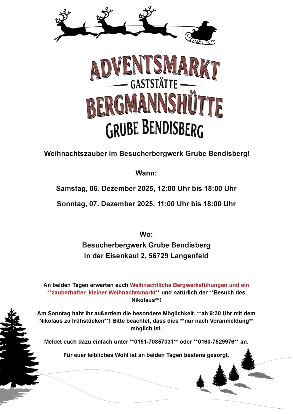 Adventsmarkt & Frühstück mit dem Nikolaus in der Bergmannshütte Grube Bendisberg