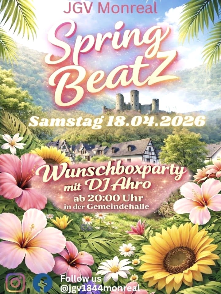 Samstag, 18.04.2026 Der Auftakt beginnt mit einem Festumzug. Am Abend folgt die Wunschboxparty mit DJ Ahro – mit den besten Hits von den 70ern bis heute.