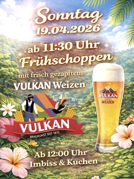 Sonntag, 19.04.2026 Um 10:30 Uhr startet der Wortgottesdienst in der Halle. Anschließend lädt der Frühschoppen zum Verweilen ein. Ab 12:00 Uhr gibt es Imbiss sowie Kaffee und Kuchen.