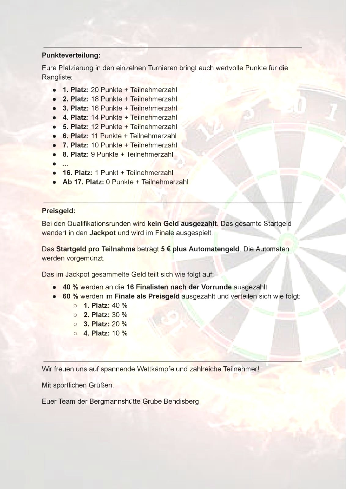 Dart-Ranking in der Bergmannshütte Grube Bendisberg