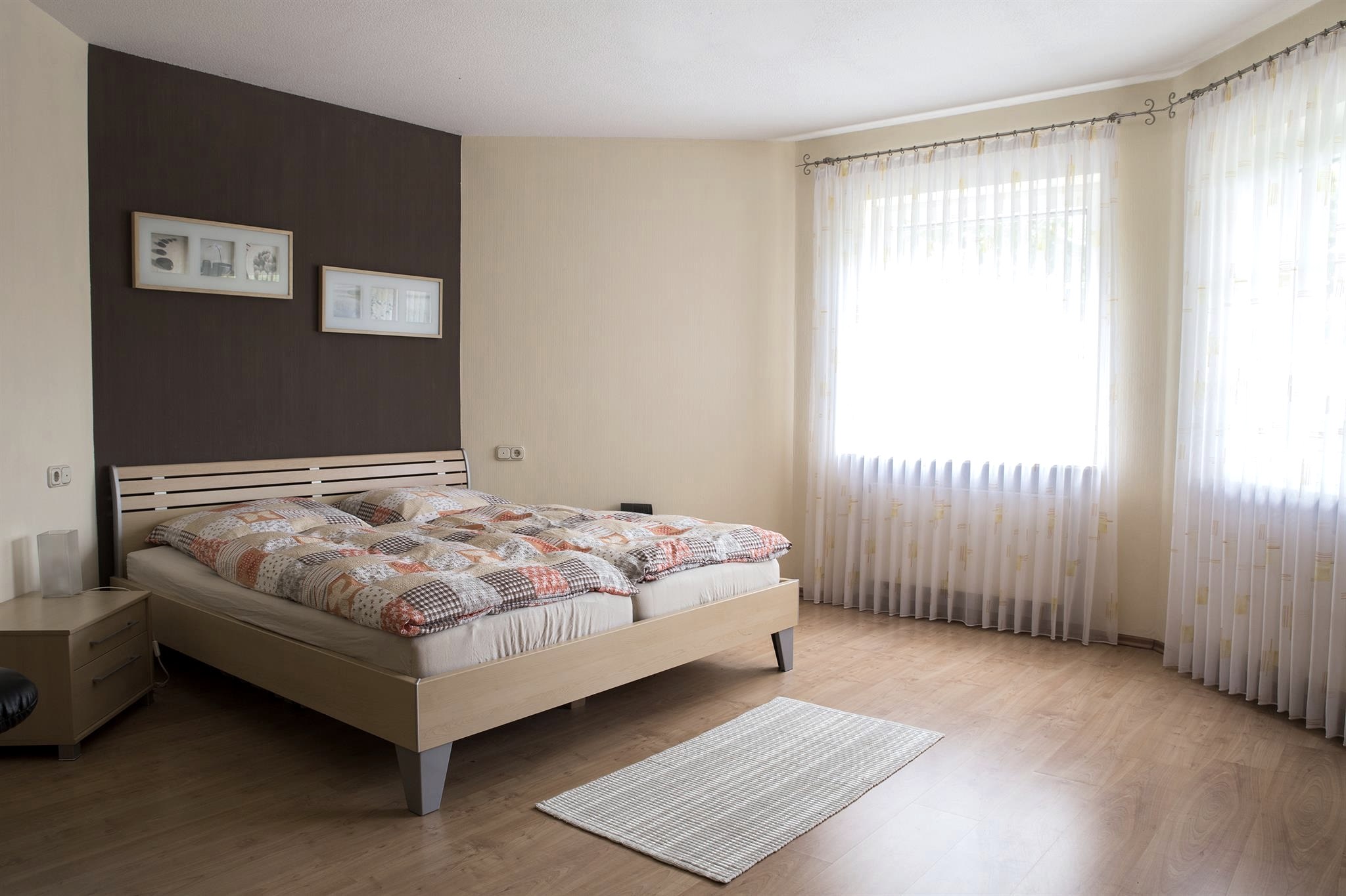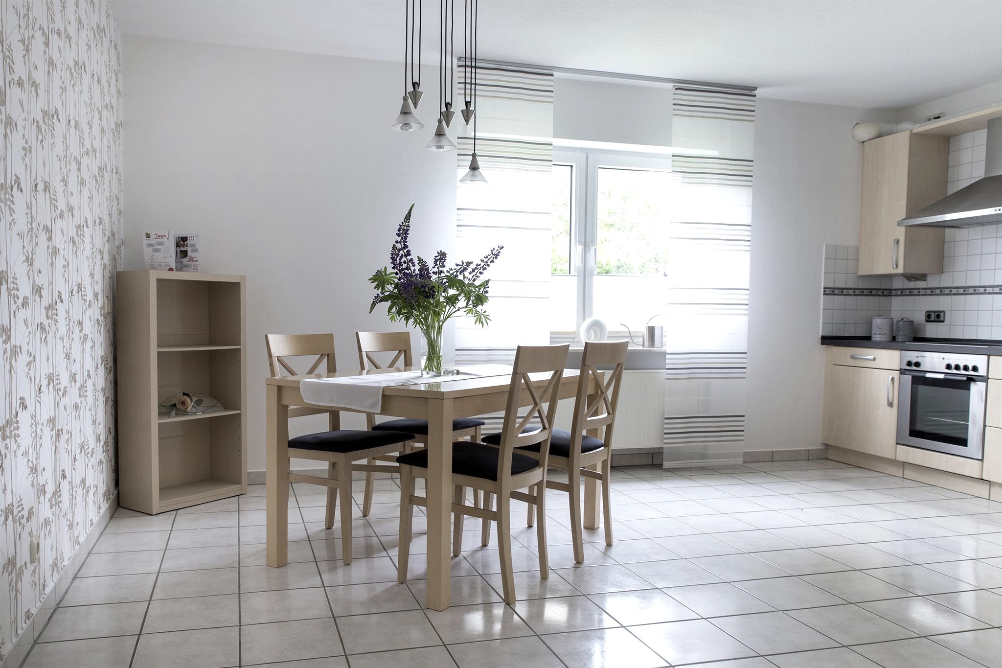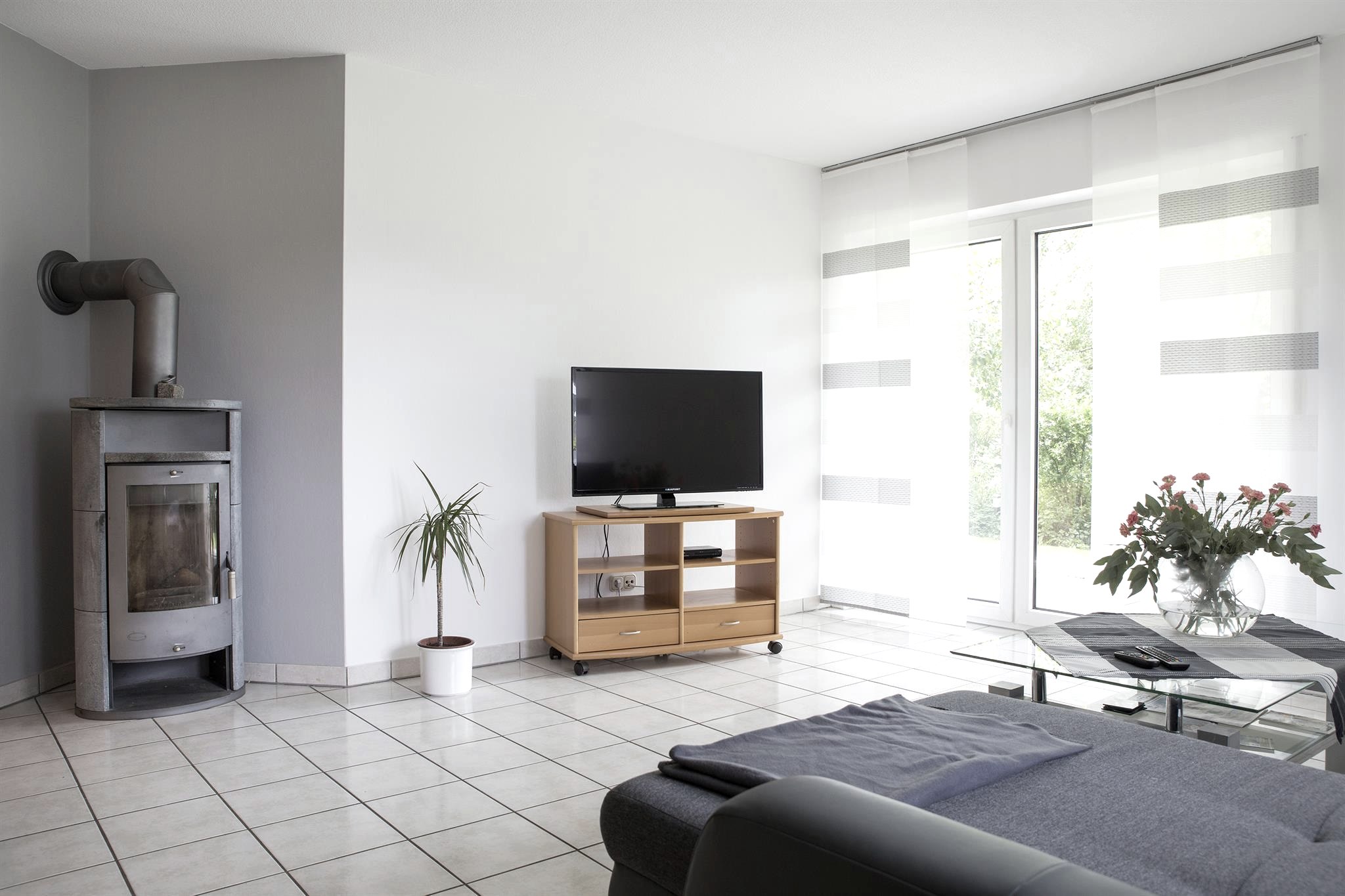 Die geräumige Ferienwohnung befindet sich im Erdgeschoss und verfügt über einen Wohnbereich mit gemütlichem Schlafsofa, Flachbild-TV, einer gut ausgestatteten Küche mit Esstisch und über ein Schlafzimmer mit einem Doppelbett.
