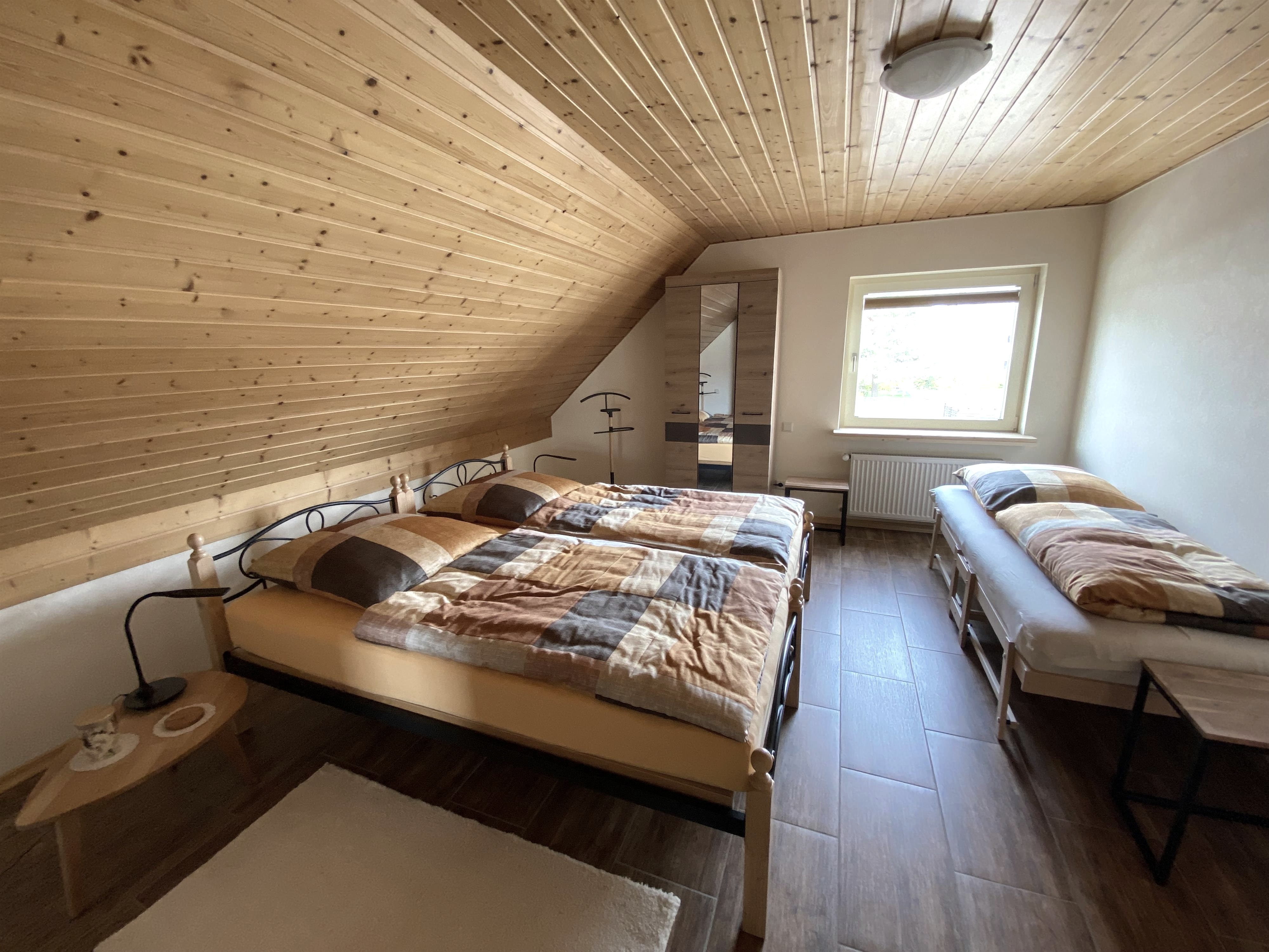 Mitten im Ort, in ruhiger Lage, steht unser freistehendes Einfamilienhaus, in dem sich die Ferienwohnung im 1. Stockwerk befindet. Sie bietet Ihnen zur Erholung und zum Ausspannen eine ruhige und behagliche Atmosphäre.