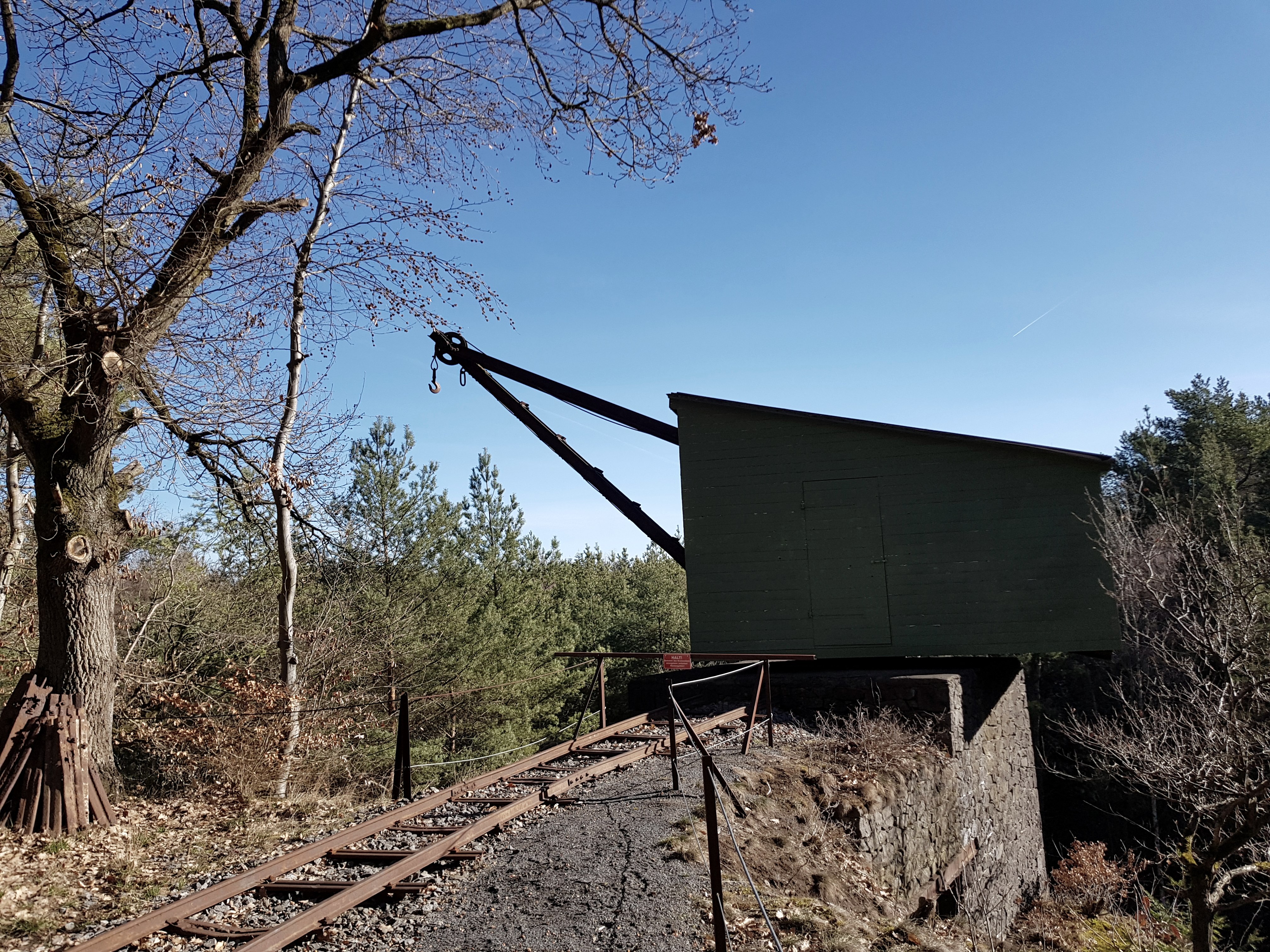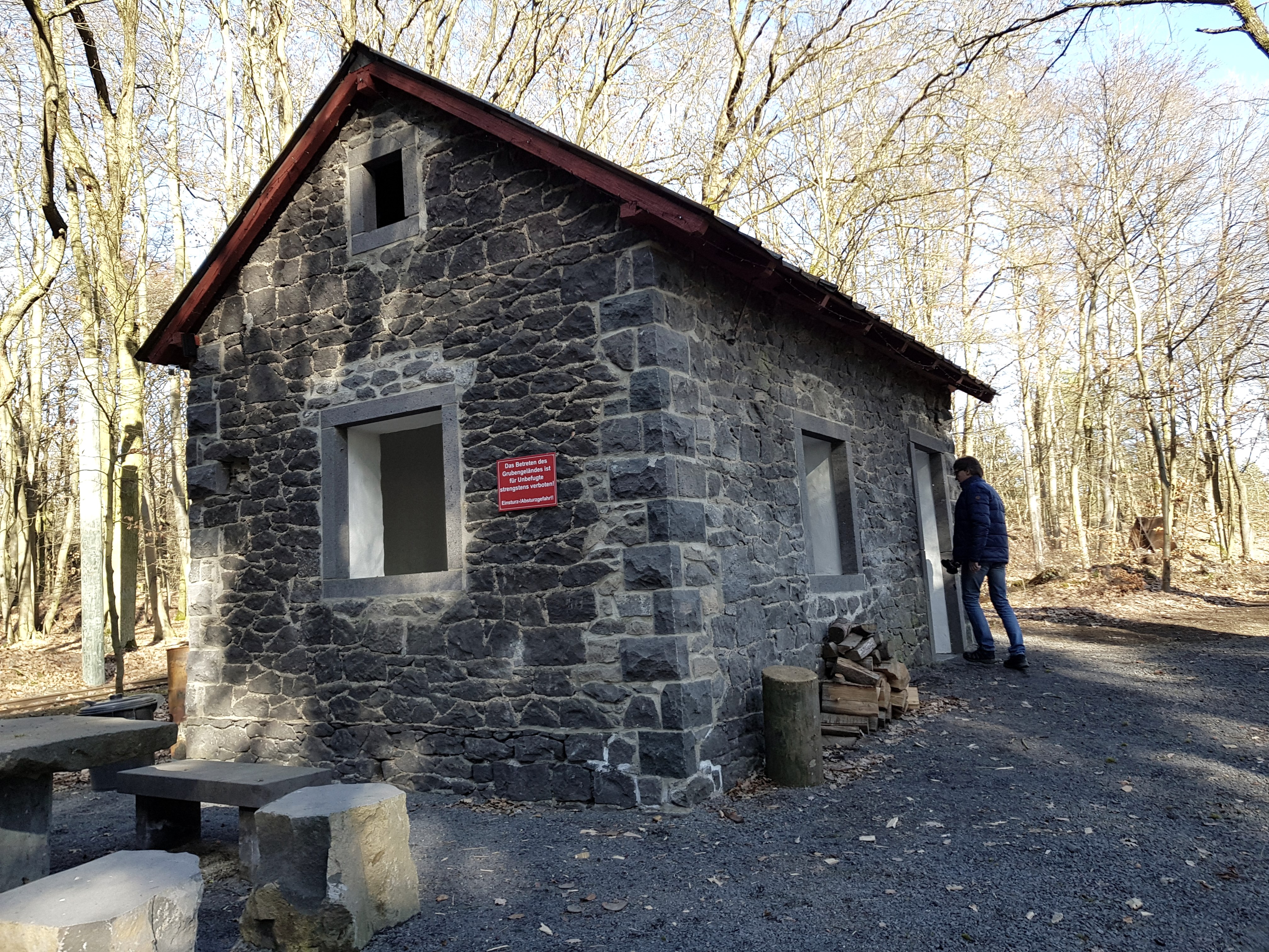Nach der Querung der K20 hält man sich rechts und geht an einem alten wieder instand gesetzten Kompressorhaus vorbei hinein ins "Kottenheimer Winfeld". Hier führt der Weg an einem Gelände vorbei, welches zur Zeit vom "Heimatverein Kottenheimer Winfeld" wieder in "frühere Zeiten zurückversetzt" wird. Da sich hier aktuell noch eine Baustelle befindet, ist dieser Bereich derzeit nicht öffentlich zugänglich.