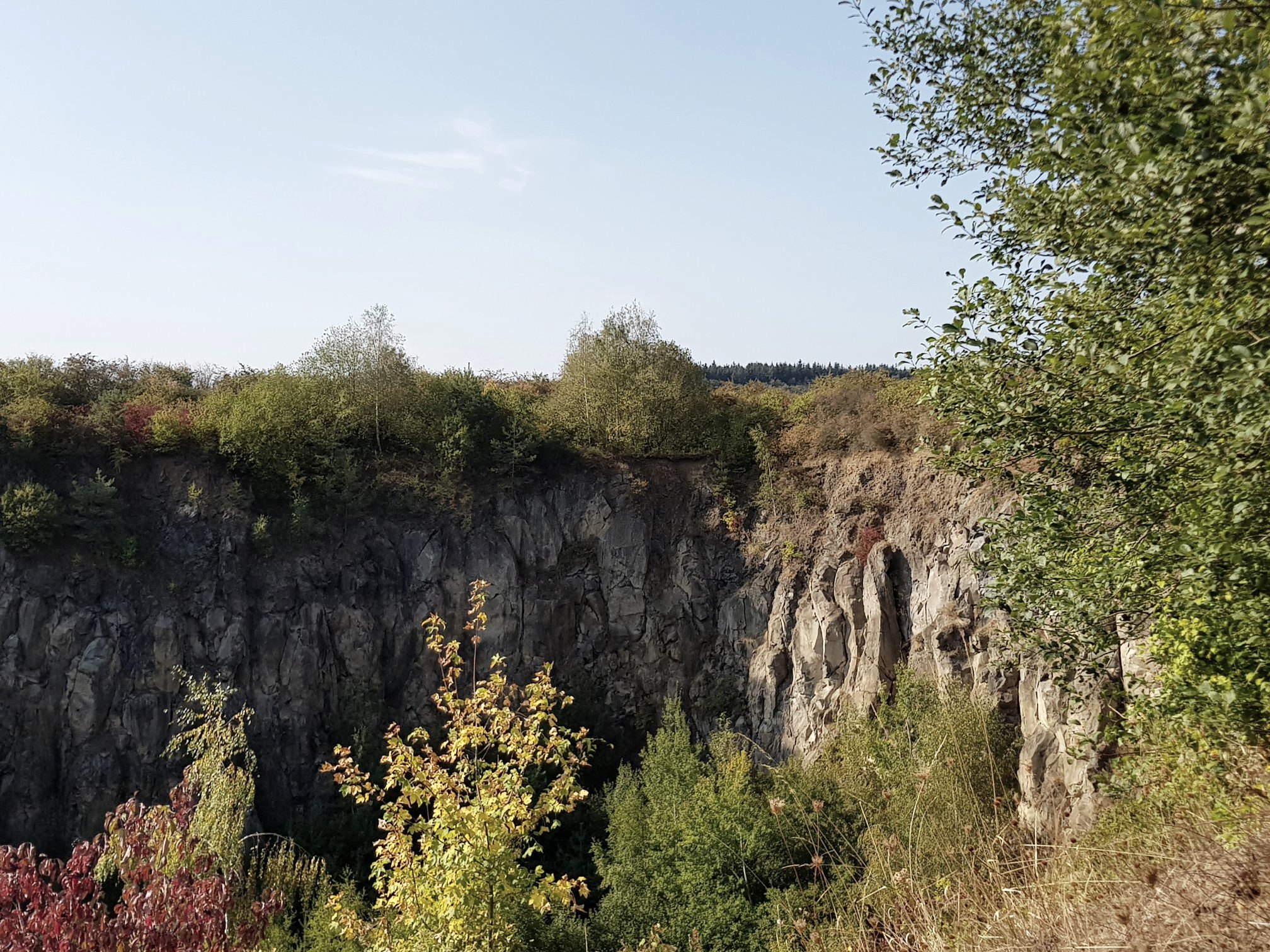 Diese Strecke ist ein Stichweg und führt nach Besichtigung der eindruckvollen Basaltwände in der "Ettringer Lay" wieder an der Flanke des Bellerbergs mit fantastischen Aussichten zurück zur ausgeschilderten Wegekreuzung. Hier hält man sich nun links und geht, an einem ehemaligen Luftschutzbunker vorbei, bevor es hinauf über den Bergrücken des "Kottenheimer Büden" geht und immer weiter entlang des Kraterrandes. Der "Kottenheimer Büden" ist die östliche Flanke des Bellerberg-Vulkans. Nach einem kurzen steilen Abstieg wird ein breiter Weg erreicht, welchem man nach links folgt.