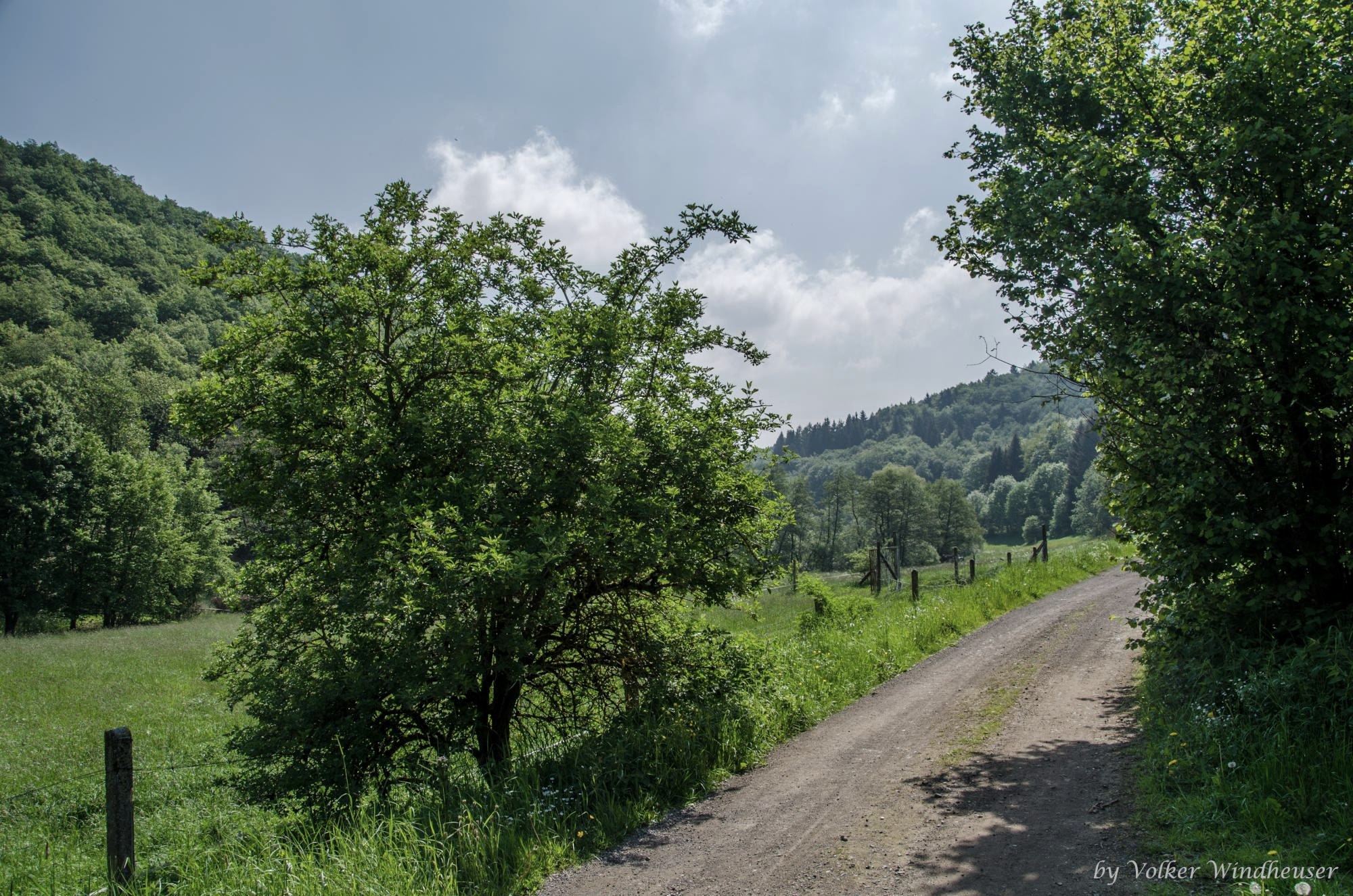 Danach steigt der Weg an, in Richtung Naturschutzgebiet Büschberg.