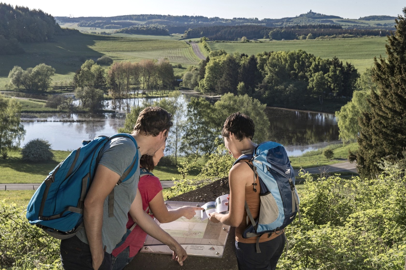Ein sanfter Abstieg führt zum Parkplatz „Schemel“ mit einer ersten Rastmöglichkeit. Von hier aus öffnet sich die Sicht auf das westliche Booser Maar, dessen Wasser in der Sonne glitzert. Der Blick schweift am Horizont bis zur Nürburg. Nach einem kurzen Waldstück sieht man auf das östliche Booser Maar, dessen Grund von Wiesen und Gehölzen bedeckt ist.